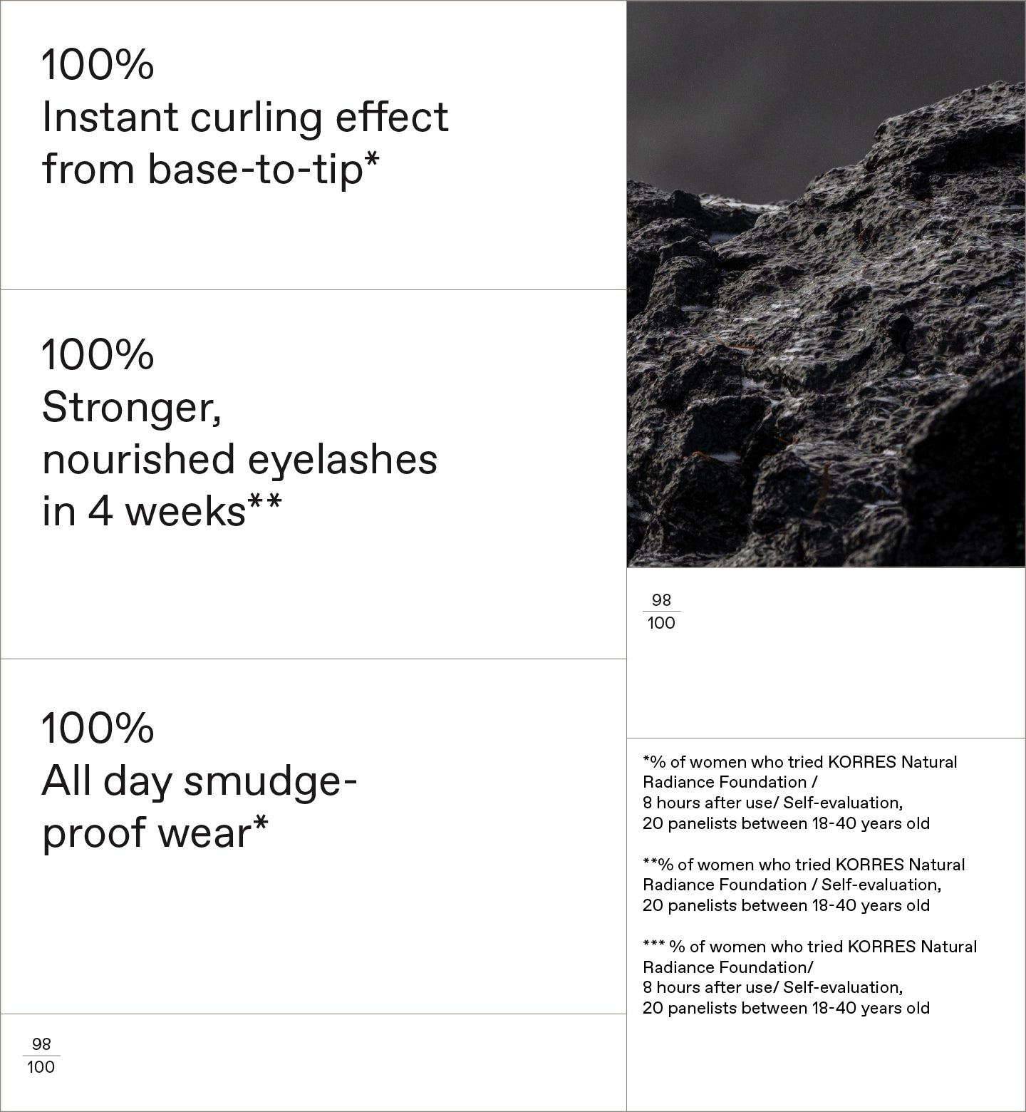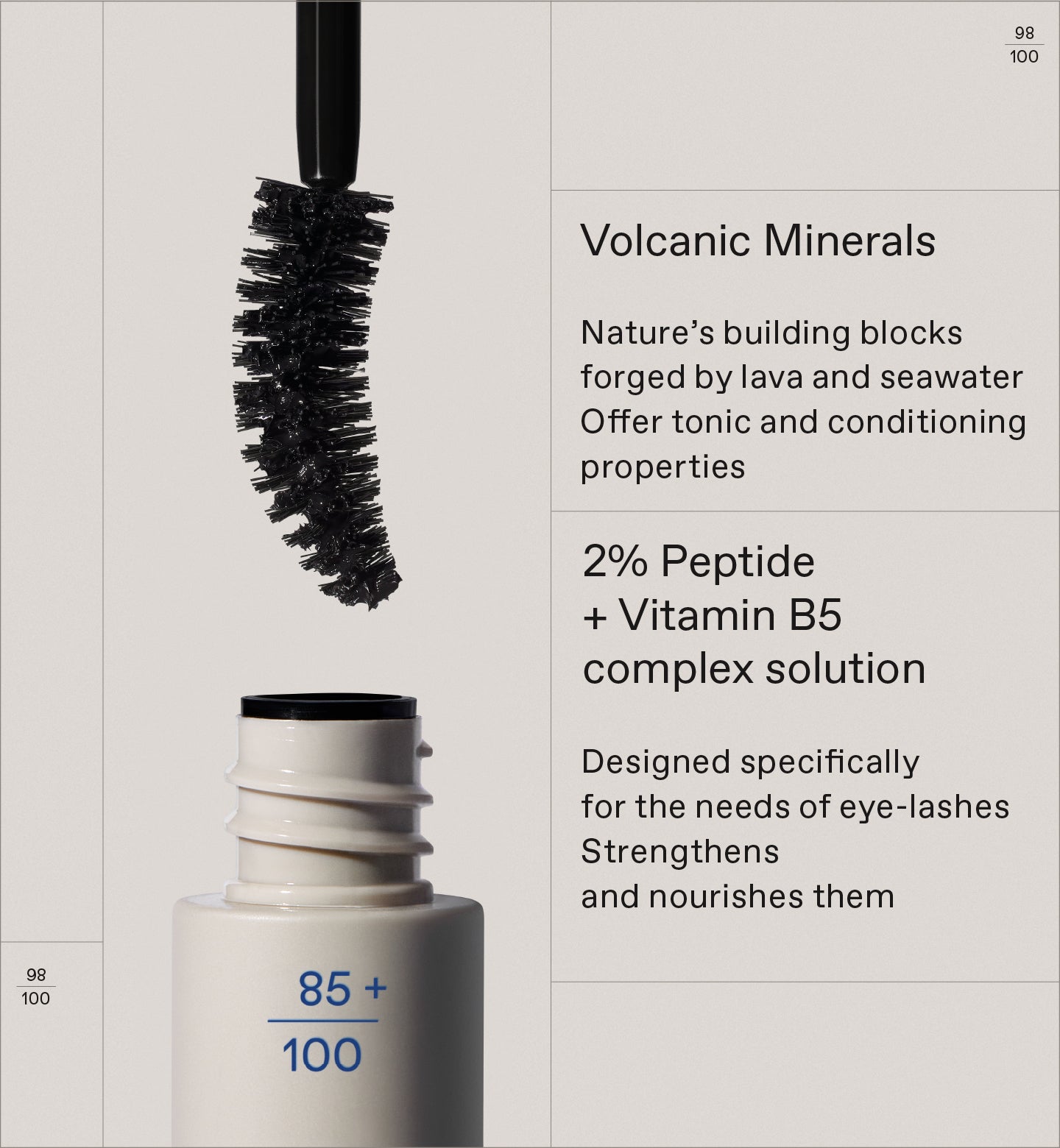 A curl-sculpting mascara for an instant lash lift effect. The curved brush lifts the lashes for a long-lasting, limitless curled result. Infused with Volcanic Minerals and a Vitamin and Peptide complex, it strengthens and nourishes the eyelashes, while offering rich color for impressive looks.
