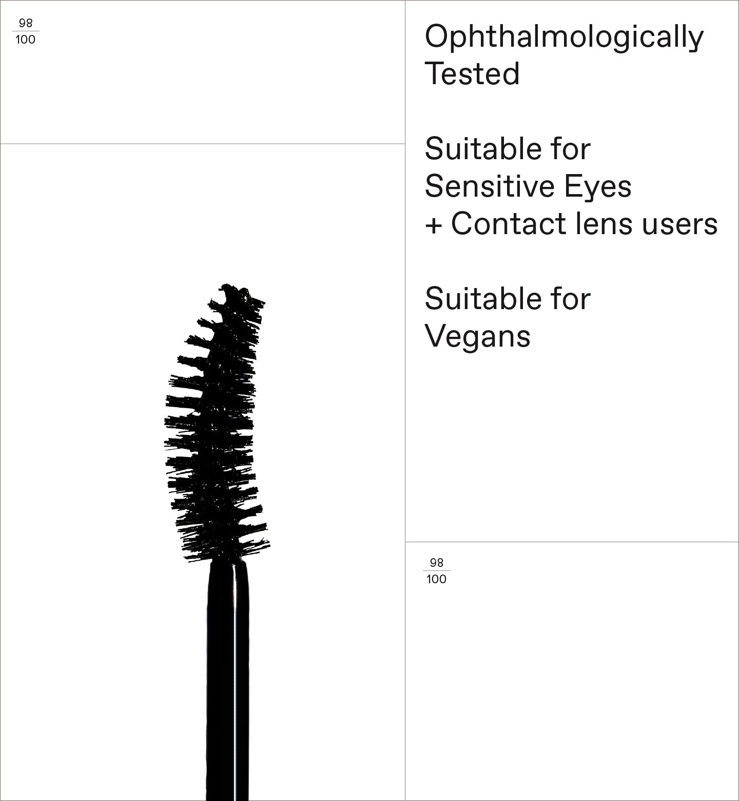 85+% Natural Origin Content, 0% Silicones, Mineral Oil, Talc Dermatologically & Ophthalmologically Tested, Suitable for Sensitive Eyes & Contact Lens Users, Suitable for Vegans, FSC Paper Packaging.