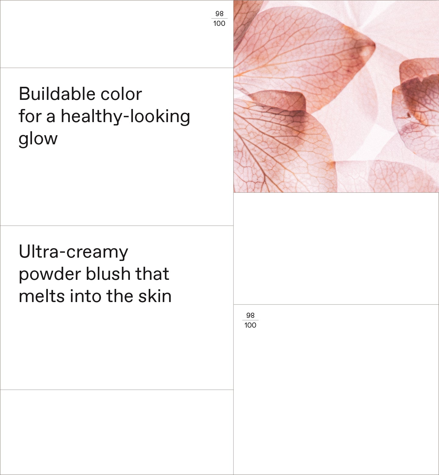 An ultra-creamy powder blush with a velvety texture, infused with Peony Flower Extract and Natural Origin Esters. Offers a buildable finish for a naturally radiant, healthy-looking glow.