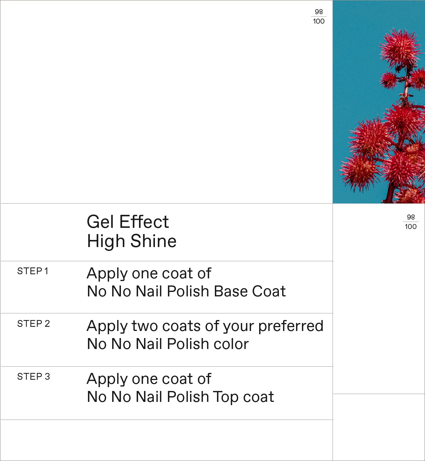 A high-naturality nail polish that offers a chip-resistant, high-shine result. Infused with Sweet Almond Oil and Plant-based Film-formers, it is a natural alternative to traditional nail polishes, without compromising results.