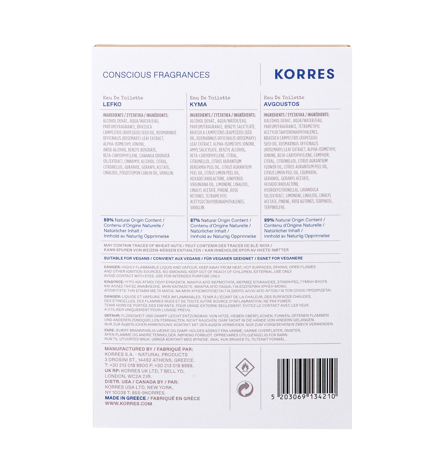 Each KORRES fragrance embodies the essence of Greek nature, offering a sensory journey through its rich and diverse landscapes. Consciously crafted, using only the finest natural ingredients and 100% plant-based alcohol.